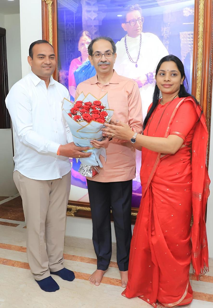 अलिबाग (प्रतिनिधी) : दिनांक ८ एप्रिल २०२६ रोजी अलिबाग नगरपरिषद निवडणुकीत यश संपादन केल्यानंतर ॲड. संदीप पालकर व ॲड. श्वेता पालकर यांनी शिवसेना पक्षप्रमुख उद्धव ठाकरे यांची मुंबईतील मातोश्री येथे सदिच्छा भेट घेतली. तब्बल ३५ वर्षांनंतर अलिबाग नगरपरिषदेत मिळालेल्या या ऐतिहासिक विजयाबद्दल उद्धव ठाकरे यांनी दोन्ही नगरसेवकांचे अभिनंदन करत कौतुक केले.